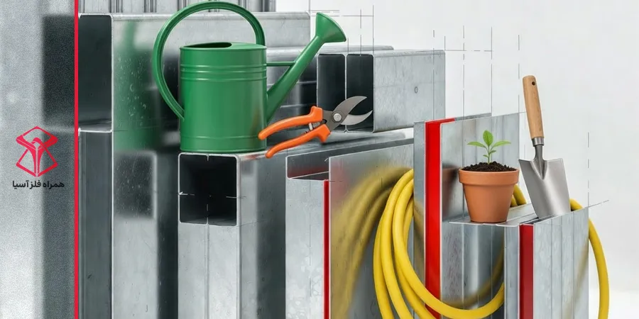 - بهداشت محیطی: زنگزدگی آهن معمولی باعث ریزش برادههای اکسید شده روی گیاهان میشود که منبع بیماریهای قارچی است. پروفیل گالوانیزه محیطی تمیز و استریل برای رشد گیاه فراهم میکند.